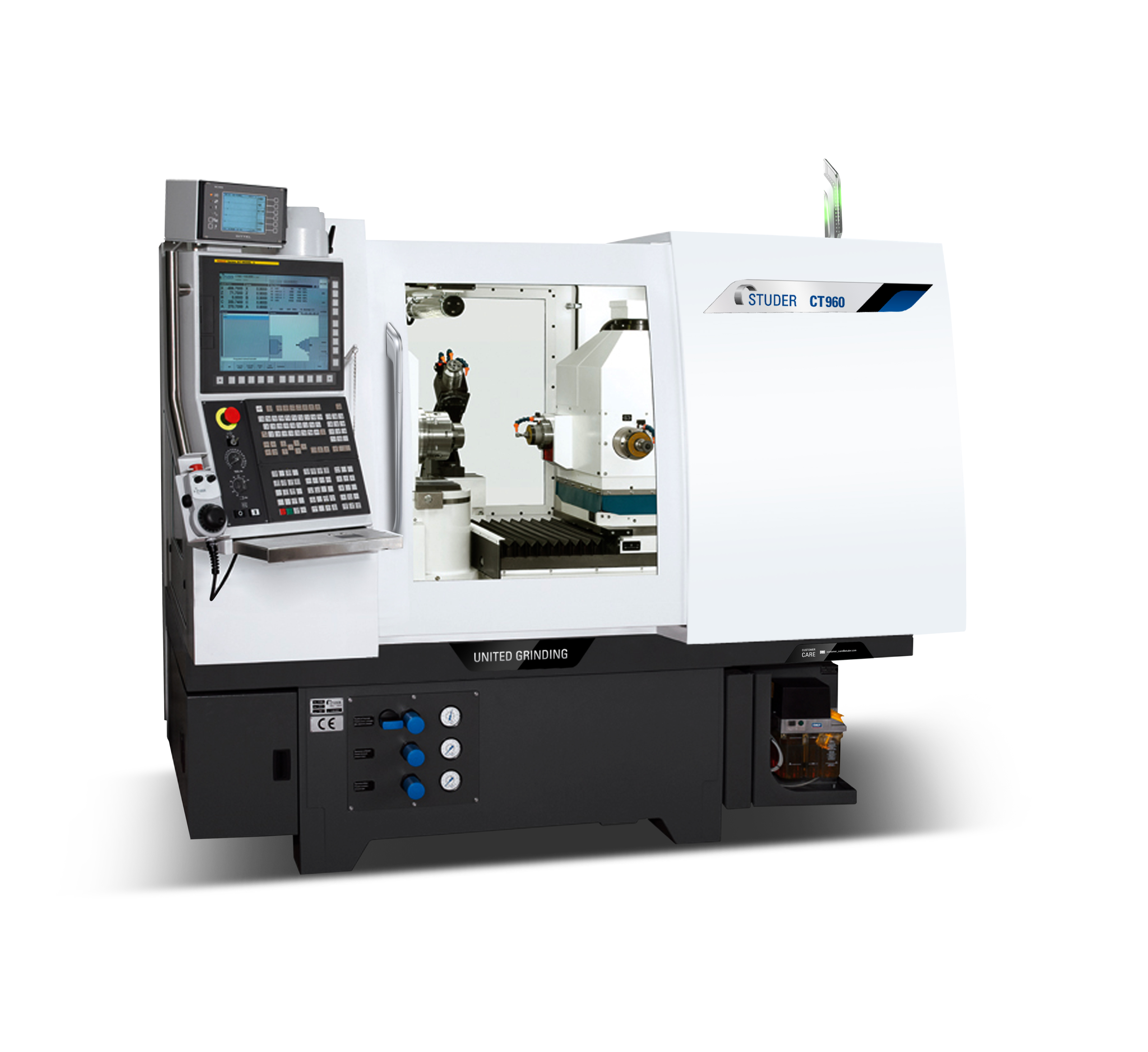 CT960是高端的萬能內(nèi)圓磨床,帶有一根可偏轉(zhuǎn)至91°的B軸和四主軸刀架。它適用于普通磨削任務(wù)以及刀具制造中的復(fù)雜工件磨削。其穩(wěn)定性和機床的剛性使工件能夠在拋光表面進行磨削。