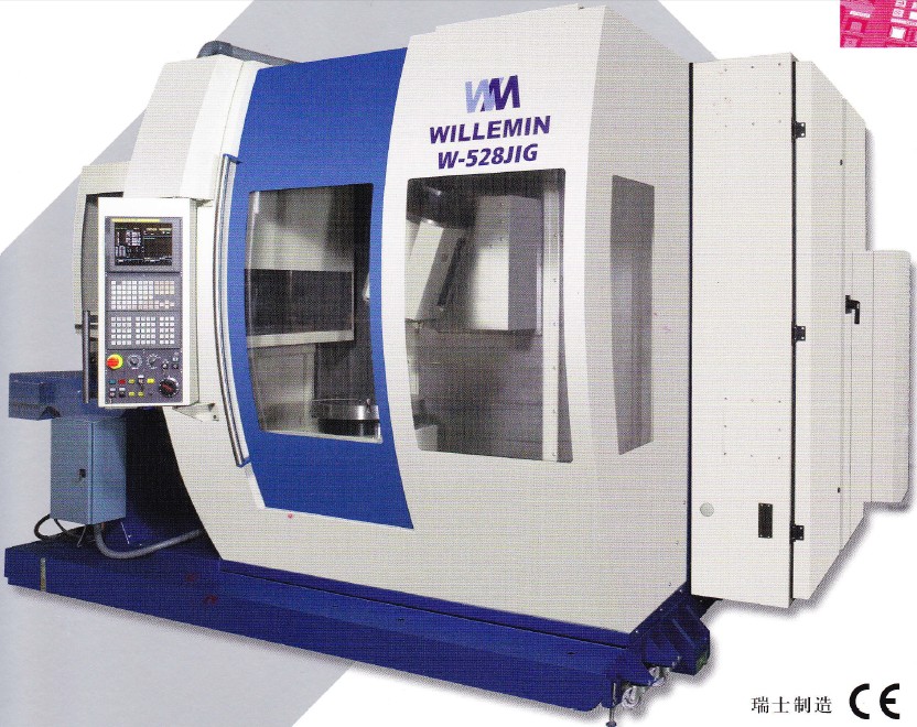 為加工復(fù)雜和高精度零件而研發(fā),加工范圍為400×400mm。高精度旋轉(zhuǎn)工作臺(C軸)及大容量的刀庫(最多可容納180把刀具)成為該機床性能高、柔性強的關(guān)鍵。528JIG高精密加工中心依標(biāo)準(zhǔn)VDI3441而造。
