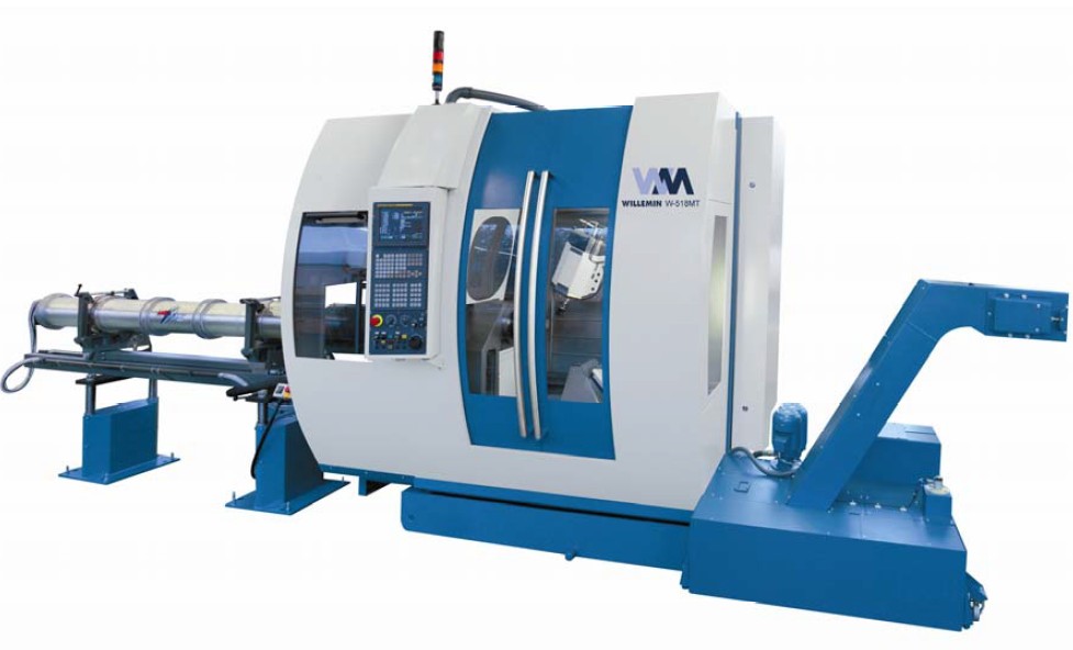 518MT加工中心可配備多種自動系統(tǒng),自主操作性極強,尤其適用于棒給和零件的裝卸。通過一個棒料進給裝置或一個棒料供應(yīng)系統(tǒng),棒料可裝入A軸分度盤。 可配備各種裝置的518MT加工中心,其超強的靈活性可以裝載長/短棒料,棒料的直徑可達65mm,各種裝卸系統(tǒng)可用于卸載成品零件。為了進一步加強機床 的自動性,威力銘-馬科黛爾公司可在機床上配備一支萬能操作臂,用于裝載和移動零件至/從庫區(qū),也可用于卸載棒料邊角料。威力銘-馬科黛爾公司可根據(jù)客戶 需求提供特殊的解決方案。